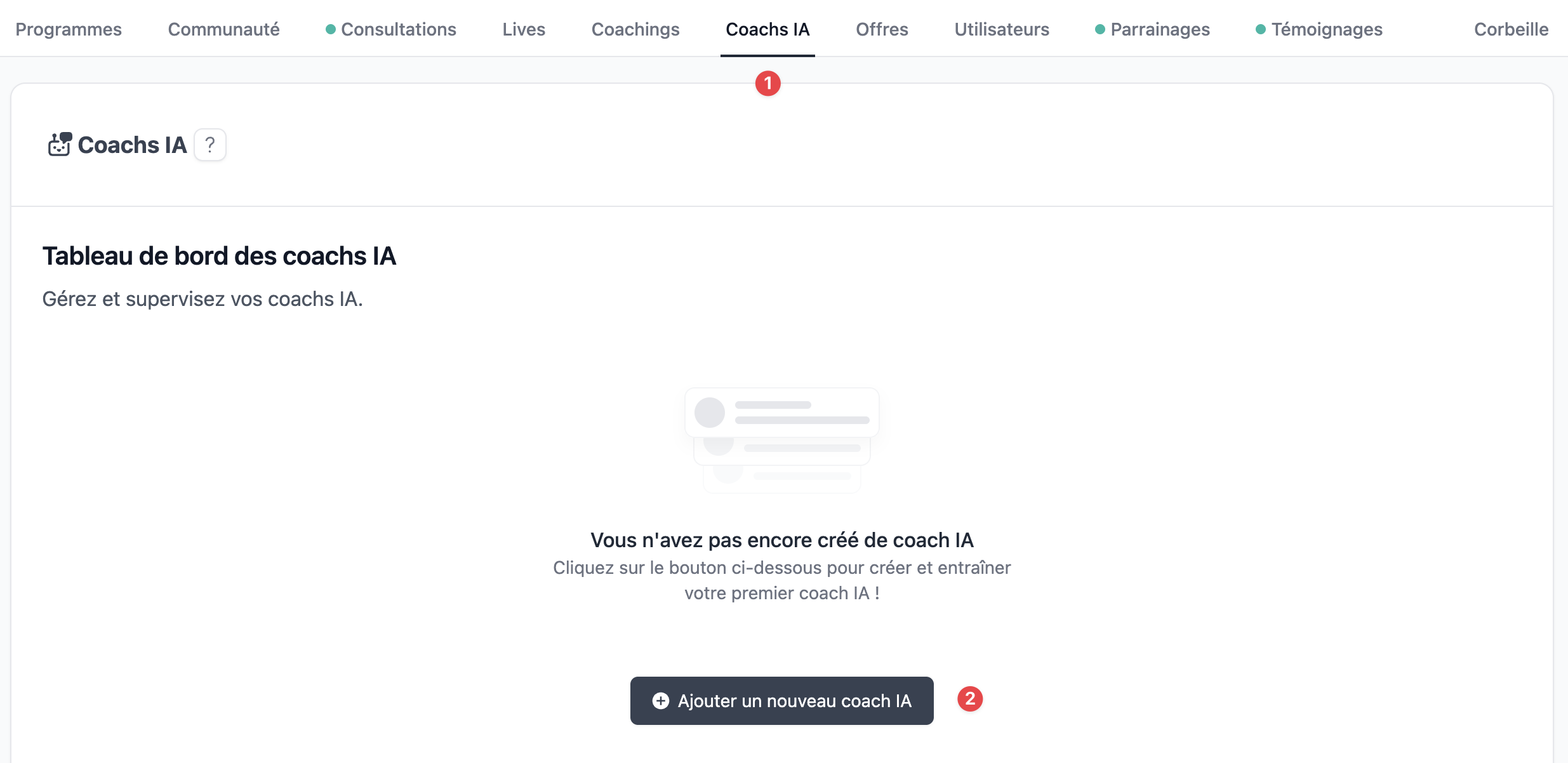 Cliquez sur l'onglet "Coach IA" puis sur "Ajouter un coach IA"