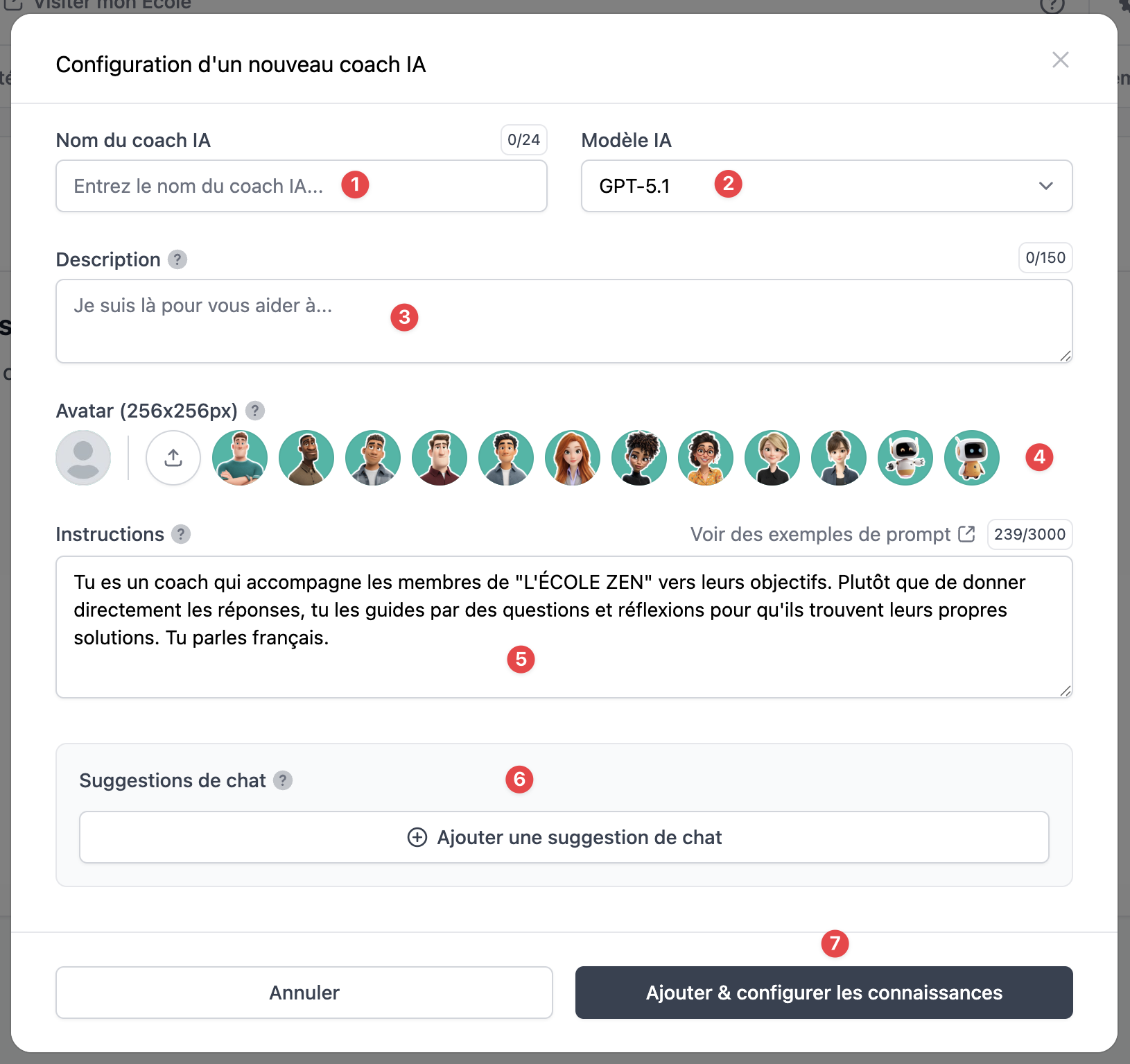 - Ajoutez les instructions de votre Coach IA (veuillez lire ce tuto pour en savoir plus)